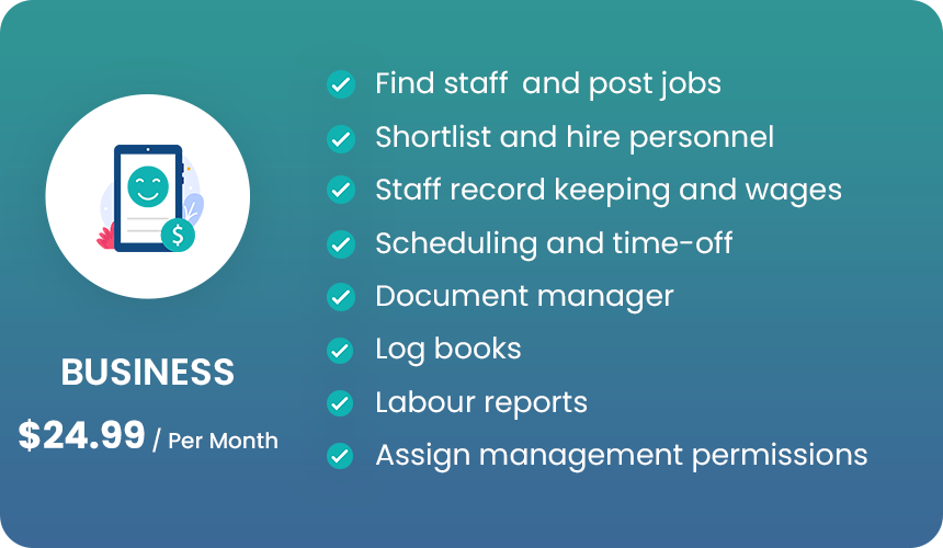 Find staff, post jobs, shortlist applicants, hire personnel,scheduling, time-off, document manager, log books, labour reports, assign management permissions and more. (see "About")