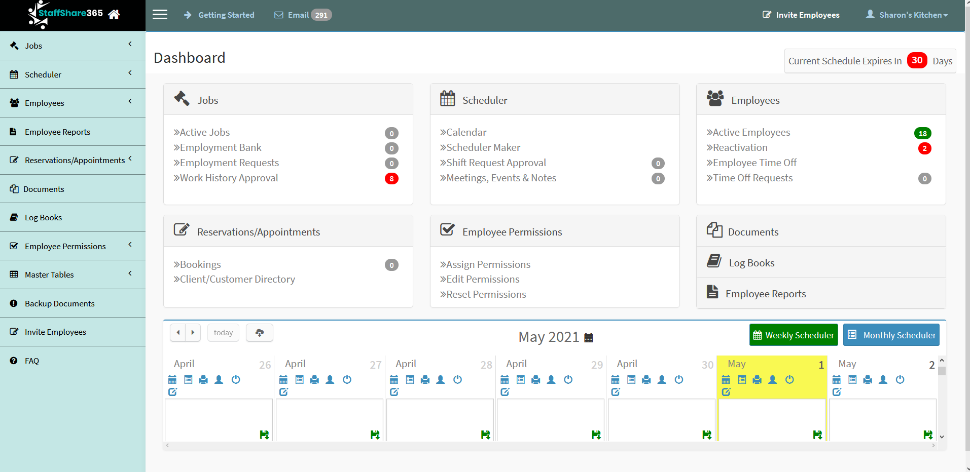 The Work Week Start Day establishes the beginning of the business work week. Some businesses may wish to assign their weekly business start day with the weekly payroll start day. Keep in mind, this will be your staff's initial day for scheduling when you create their schedules. For example, offices generally start on a Monday, while a restaurant may start on a Sunday. You may choose any day as the start of the work week.